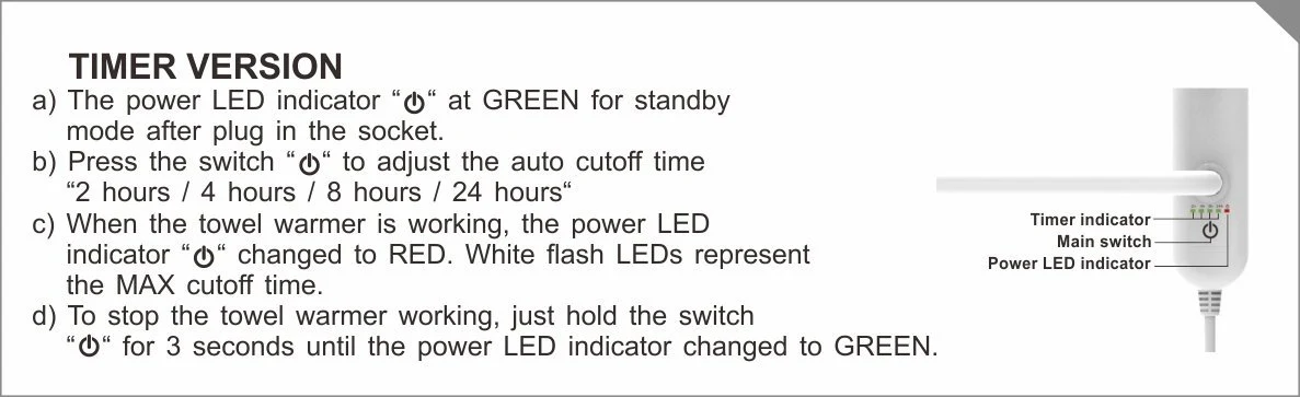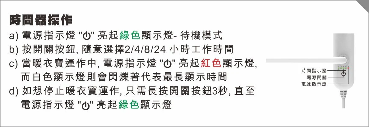 改進版設計的暖衣寶加進了自動切斷電源功能, 用家可以設定時間